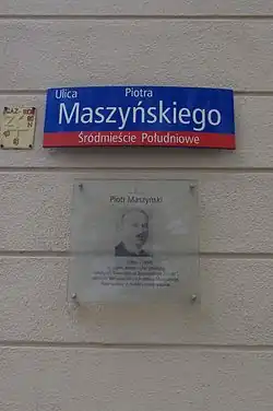 - ↑ Cmentarz Stare Powązki: PIOTR MASZYŃSKI, [w:] Warszawskie Zabytkowe Pomniki Nagrobne [dostęp 2020-01-14].