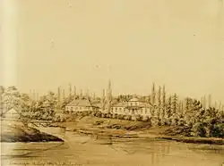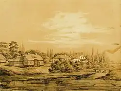 W latach 30. XIX wieku Dziekońscy wybudowali tu drewniany dwór. Był to dziewięcioosiowy, parterowy, w części środkowej piętrowy, wzniesiony na wysokiej podmurówce na planie prostokąta, dom. Od strony podjazdu miał najprawdopodobniej portyk o czterech kolumnach, w wielkim porządku dźwigających trójkątny fronton, w którym umieszczono herb rodziny. Portyk był później zastąpiony dwukondygnacyjną oszkloną werandą, a wejście znajdowało się niecentralnie, z dobudowanego tarasu po lewej stronie. Na skrajnych osiach znajdowały się małe ganki, każdy z dwiema kolumienkami i trójkątnym przyczółkiem. Tylna strona dworu, skierowana do rzeki, znana z rysunków Ordy, była zdominowana przez taras z balkonem wspartym na sześciu kolumnach[8].