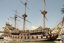 Zbudowany specjalnie na potrzeby filmu galeon Neptun był najdroższym pojedynczym rekwizytem użytym w filmie[1][a]. Replika hiszpańskiego galeonu zaprojektowanego przez Pierre’a Guffreya kosztowała 7 milionów funtów[1].