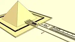 Długość boku podstawy wynosiła 104,2 m, wysokość 75 m, a kąt nachylenia boków 57° 15'. Jej część nadziemna zbudowana została z suszonej cegły mułowej obudowanej wokół naturalnego rdzenia skalnego.Całość budowli oblicowano wapieniem z Tura. Wszystkie pomieszczenia wewnętrzne zostały wykute w skale podłoża na głębokości ok. 12 metrów poniżej powierzchni podłoża.