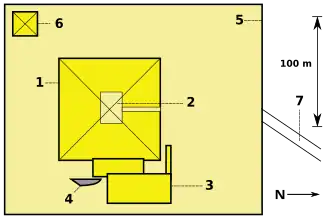 Do komory grobowej wiódł długi na ok. 50 m korytarz. Komora grobowa znajdowała się na głębokości ok. 20 m, a sarkofag był prawdopodobnie zbudowany z czerwonego granitu. Długość jej boku, jak się szacuje, miała wynosić ok. 100 m, a wysokość – 92 m.