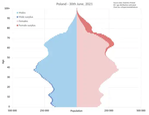 W przypadku piramidy wieku polskiego społeczeństwa widoczne są niże demograficzne, gdy rodziło się mniej dzieci oraz wyże, gdy rodziło się ich znacznie więcej. Wynikają one z sytuacji, jaka zaszła podczas II wojny światowej i w kilku latach powojennych. W czasie wojny zawierano mniej małżeństw i rodziło się mniej dzieci, a zaraz po wojnie nastąpiła rekompensata tego stanu: małżeństwa i rodzenie dzieci odkładano na czas po wojnie. Fale wyżów i niżów są widoczne w kolejnych pokoleniach (dzieci i wnuków osób urodzonych podczas wojny i zaraz po wojnie), jednak z czasem stopniowo zanikają[2].