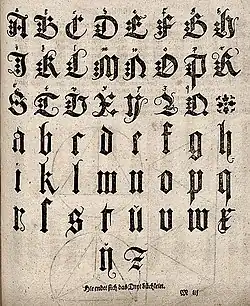 - ↑ Bogusław Lehman, Pismo gotyckie, [w:] Współczesne polskie drukarstwo i grafika ksia̜żki: mały słownik encyklopedyczny, Ksia̜żki o ksiażce, Wrocław: Ossolineum, 1982, s. 218, ISBN 978-83-04-00807-6 [dostęp 2023-11-17].