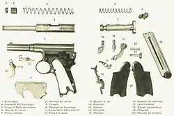 M1910 był zasilany z wymiennego, jednorzędowego magazynka pudełkowego o pojemności 7 naboi, umieszczonego w chwycie.
