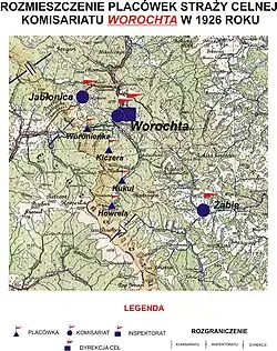 W drugiej połowie 1927 roku przystąpiono do gruntownej reorganizacji Straży Celnej[5]. W praktyce skutkowało to rozwiązaniem tej formacji granicznej. Ochronę północnej, zachodniej i południowej granicy państwa przejęła powołana z dniem 2 kwietnia 1928 roku Straż Graniczna[6]. Rozkazem nr 5 z 16 maja 1928 roku w sprawie organizacji Małopolskiego Inspektoratu Okręgowego dowódca Straży Granicznej gen. bryg. Stefan Pasławski powołał komisariat Straży Granicznej „Worochta”. Dopiero rozkazem nr 7 z 25 września 1929 roku w sprawie reorganizacji i zmian dyslokacji Małopolskiego Inspektoratu Okręgowego komendant Straży Granicznej płk Jan Jur-Gorzechowski powołał placówkę Straży Granicznej I linii „Howerla”[7].
