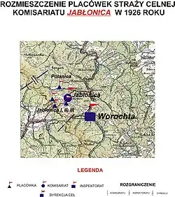 Rozkazem nr 5 z 16 maja 1928 roku w sprawie organizacji Małopolskiego Inspektoratu Okręgowego dowódca Straży Granicznej gen. bryg. Stefan Pasławski powołał komisariat Straży Granicznej „Worochta”. Placówka Straży Granicznej I linii „Jabłonica” znalazła się w jego strukturze[7].