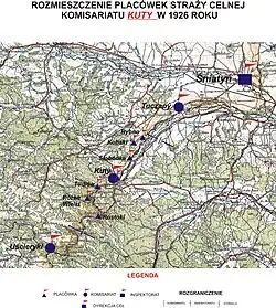 - ↑ Według mapy taktycznej WIG z 1935 r. nazwa brzmiała Roztoki. Autorzy Kalendarza z szematyzmem funkcjonariuszy Straży Celnej na rok 1927 używają nazwy „Rostoki”[1]. Podobnie czyni to Piotr Kozłowski w: Straż Celna zapomnianą formacją graniczną II Rzeczypospolitej – dyslokacja jednostek granicznych w 1926 roku[2].