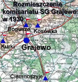 Rozkazem nr 1 z 12 marca 1928 roku w sprawach organizacji Mazowieckiego Inspektoratu Okręgowego Naczelny Inspektor Straży Celnej gen. bryg. Stefan Pasławski określił strukturę organizacyjną komisariatu SG „Grajewo”. Placówka Straży Granicznej I linii „Bogusze” znalazła się w jego strukturze[7].