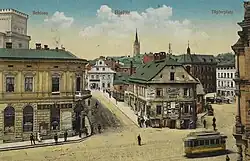 Pod koniec XIX wieku plac stał się ważnym punktem dla komunikacji miejskiej. Znajdował się na trasie utworzonej w 1895 linii tramwajowej z przystankiem Sparkasse (po 1918 Kasa Oszczędności) we wschodniej części placu, natomiast w części centralnej powstały postoje fiakrów, omnibusów, a w późniejszym okresie także taksówek[5].
