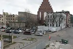 - od strony wschodniej – przebiega jezdnia przypisana do ulicy świętej Doroty, a za nią znajduje się Kościół Świętych Stanisława, Doroty i Wacława[1][4][10],