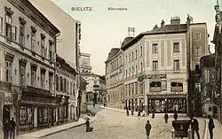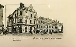 - ↑ Ewa Janoszek: Perły architektury Bielska-Białej: Budowle kunsztownie cyzelowane. Bielsko-Biała: Wydział Promocji Miasta, Urząd Miejski w Bielsku-Białej, s. 42. ISBN 978-8360136-87-4.
