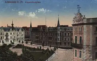 W czasach Prus Wschodnich, plac nosił nazwę Kopernikusplatz (plac Kopernika). W 1900 wybudowano pierwsze kamienice – przy placu Bema 2 i 4. Na przełomie XIX i XX wieku znajdowały się tu instytucje wojskowe. Kamienicę przy placu Bema 4 (tzw. Willa Martha) wybudował Robert Mrzyk – przedsiębiorca budowlany, właściciel okazałych w ówczesnym okresie olsztyńskich zakładów murarsko-brukarskich. Willa Martha pełniła w latach 1905-1911 funkcję siedziby rejencji olsztyńskiej. Pośrodku skweru w 1923 odsłonięto i poświęcono pomnik ku czci żołnierzy I Warmińskiego Pułku Piechoty Nr 150, stacjonującego wówczas w olsztyńskich koszarach nad Jeziorem Długim, poległych podczas I wojny światowej na froncie wschodnim i zachodnim. Podczas drugiej wojny światowej większość kamienic nie uległa zniszczeniu.