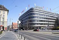 Budynek[d] Banku Drezdeńskiego, siedziby jego wrocławskiego oddziału, zbudowany w 1913 r., ocalał podczas oblężenia Wrocławia w 1945 r., później użytkowany był przez bank BZ WBK[1][6][14].