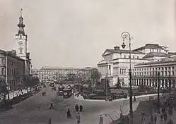![]() Plac Teatralny, po prawej pałac Jabłonowskich, po lewej gmach Teatru Wielkiego | |
