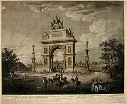 We wrześniu 1809 na placu ustawiono bramę triumfalną z napisem Pamiątka chwalebnego powrotu Woyska Narodowego po szczęśliwie dla oręża polskiego odbytej kampanii MDCCCIX, na powitanie wojsk polskich pod dowództwem księcia Józefa Poniatowskiego wracających do stolicy po kampanii austriackiej[32]. W listopadzie 1815 zbudowano tam drewnianą bramę triumfalną w stylu klasycystycznym z okazji wjazdu do Warszawy – od strony południowej tj. przez rogatki mokotowskie – cesarza Rosji Aleksandra I[33][34]. Był to jednoarkadowy łuk triumfalny z rozbudowaną partią rzeźbiarską[34]. Obydwie budowle zaprojektował Jakub Kubicki[32].