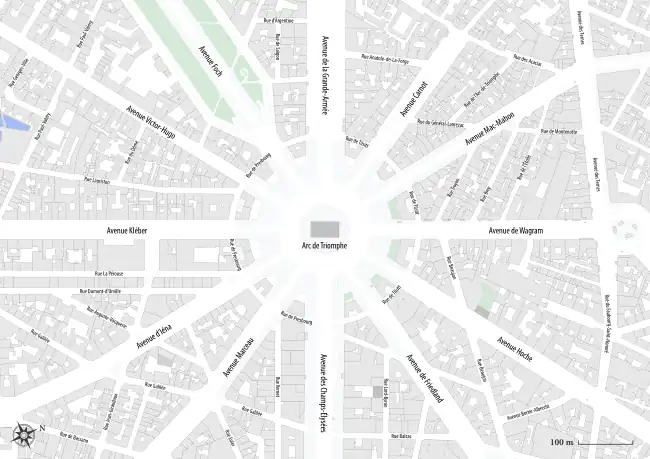 Na placu mieści się Łuk Triumfalny, budowany w latach 1806–1836 w celu uczczenia zwycięstw Napoleona[1].