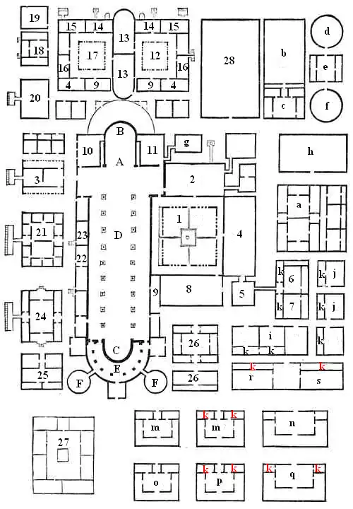 Identyfikacja poszczególnych części i pomieszczeń klasztoru[7]: