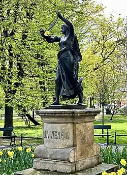- Pomnik Lilli Wenedy – powstał w 1885. Jest dziełem Alfreda Dauna; kamienną rzeźbę zastąpiono w 1897 odlewem z brązu. Fundatorem był dr Henryk Jordan.