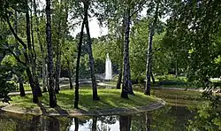 - Staw – niewielki zbiornik wodny w kształcie ósemki, kompozycja w stylu japońskim – z łukowatym mostkiem, wysepką z brzozami i fontanną. Powstał w 1904.