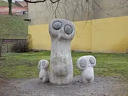 - Sowy – rzeźba Bronisława Chromego. W 1961 powstała sowa i dwie sówki. Mała i średnia padły łupem „kolekcjonera” i pozostała tylko największa. Po renowacji w 2015 przywrócone brakujące figurki i odczyszczono dużą sowę. Znajduje się przy ul. Podzamcze.