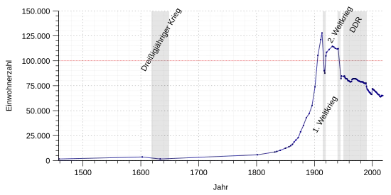 W czasie II wojny światowej znajdowała się tu filia niemieckiego obozu koncentracyjnego Flossenbürg. W końcowym okresie wojny 10 kwietnia 1945 miasto zostało zbombardowane przez aliantów. Zginęło około 900 osób. Od 16 kwietnia 1945 pod okupacją amerykańską, od 1 lipca w radzieckiej strefie okupacyjnej, w latach 1949–1990 część NRD.