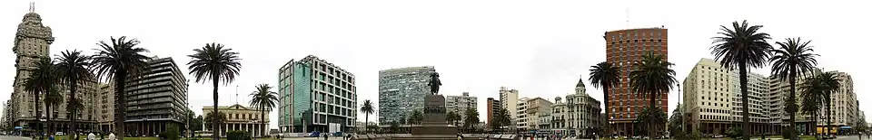 Po wschodniej stronie placu znajduje się Ciudadela, brama będąca pozostałością dawnych murów obronnych oraz muzeum Museo Torres Garcia. Po stronie południowej znajdują się Teatr Solís oraz budyneki Torre Ejecutiva będący przyszłą siedzibą prezydenta Urugwaju i Palacio Estévez, najstarsza siedziba. Po stronie południowo-wschodniej ulokowany jest Palacio Salvo oraz Palacio Rinaldi. Po stronie północnej położony jest m. in: Radisson Montevideo Victoria Plaza Hotel.