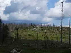 Ścieżka graniczna i skałki na wierzchołku Plechý | |