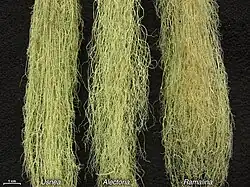 - plecha pilśniowata – nitkowata, złożona z bardzo cienkich niteczek (grubość 10-30 µm) złożonych z glonów Trentepohlia lun Scytonema oplecionych strzępkami grzybów