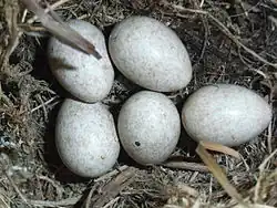 Prawdopodobnie dwa lęgi w roku – w maju i czerwcu. W jednym lęgu 4–5 jaj o średnich wymiarach 21×15 mm, białych o lekko szarawym lub biało-żółtym odcieniu i gęsto nakrapianych szarobrązowymi, małymi plamkami.