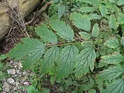 - 2–3-krotnie pierzaste, o jajowatych, brzegiem piłkowanych odcinkach. Na spodniej stronie są rzadko owłosione.