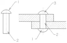 Długość trzpienia nitowanego powinna być równa sumie grubości obu łączonych elementów, powiększonej o długość trzpienia, przeznaczoną do uformowania zakuwki.