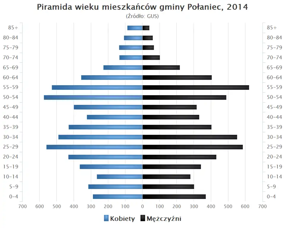 - Piramida wieku mieszkańców gminy Połaniec w 2014 roku[1].