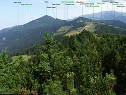 - Babki (Babky), 1566 m. Rozgałęziają się na 3 grzbiety:
