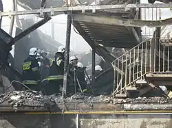 ![]() Dogaszanie zgliszcz hotelu kilka godzin po pożarze. | |