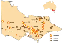 - ↑ Nine bushfires out of control in Victoria. s. 2009-02-07. [dostęp 2009-02-08].