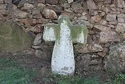 - monolitowy kamienny krzyż pod murem cmentarza kościelnego o nieustalonym pochodzeniu, wieku i przyczynie fundacji; krzyż opisywany jest często jako tzw. krzyż pokutny, jest to jednak tylko hipoteza nie poparta żadnymi dowodami lecz wyłącznie nieuprawnionym założeniem, że wszystkie stare kamienne monolitowe krzyże, są krzyżami pokutnymi (pojednania)[7]; w rzeczywistości powód fundacji krzyża może być różnoraki, tak jak każdego innego krzyża