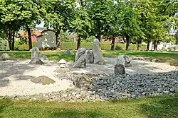- rzeźby: Ukoronowanie Panny Marii z 1736 oraz św. Jana Nepomucena z 1682[5].