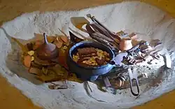 W trakcie popielenia zwłok mogło dochodzić do rytualnego spalania wszystkich darów i rzeczy osobistych zmarłego, z czego większe z nich były dodatkowo gięte lub łamane (np. miecze). Mężczyzn chowano wraz z uzbrojeniem i narzędziami kowalskimi, a kobiety z zapinkami, klamrami i przęślikami. W Europie dominujący w okresie środkowolateńskim 300 p.n.e. do 100 p.n.e. (regionalnie do ok. 150 p.n.e.)[2].