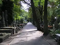 - ↑ Znicze oznaczają orientacyjne położenie mogiły pod alejką.