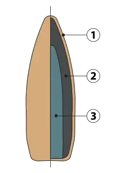 - rdzeń - wykonany z twardego metalu, zwiększający możliwość penetracji,