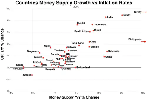 W wielu państwach istnieje związek między wzrostem podaży pieniądza a wzrostem realnego produktu krajowego brutto[2].
