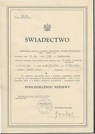 Studia w wyższej szkole oficerskiej lub w akademii wojskowej zakończone są ceremonią promocji na pierwszy stopień oficerski (zwykle podporucznika, przed II wojną światową wyjątkowo prymusi byli promowani na stopień porucznika, a w pierwszych promocjach WAT – nawet na stopień kapitana, np. kpt. Kazimierz Palski). W przypadku Akademii Pożarniczej absolwenci po promocji otrzymują tytuł młodszego kapitana pożarnictwa.