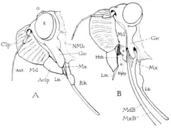 - ↑ V: The Head Appendeages. W: R.E. Snodgrass: Principles of Insect Morphology. Cornell University Press, 1935.