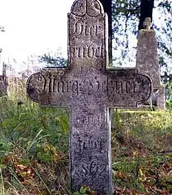 Po niemieckich kolonistach pozostał w tej prawosławno-katolickiej okolicy ewangelicki cmentarz, leżący na skraju wsi. Zachowało się około 100 nagrobków. Najstarsze pochodzą z lat dwudziestych XIX wieku, ostatnie z okresu międzywojennego. Z typowymi dla okolicy bruśnieńskimi nagrobkami (z niemieckimi napisami), sąsiadują charakterystyczne ewangelickie, wysokie obeliski. Najczęściej powtarzające się nazwiska to: Mattern, Buffy, Kaufmann, Mauthe, Schick, Walker, Ursel, Gessner i Jaki. Rozpoznawalne są nagrobki pastorów: Johanna Nikolausa Kaufmanna, Wilhelma Walcha i Johanna Labsika.