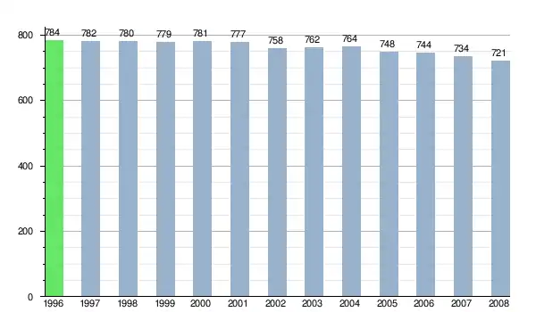 Według danych z dnia 31 grudnia 2012, wieś zamieszkiwało 775 osób, w tym 387 kobiet i 388 mężczyzn[7].