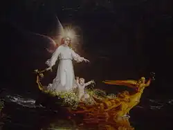 Złowieszcze chmury wiszą nad rozległym i północnym Oceanem. Kilka jałowych skał, widocznych poprzez mrok oznacza ostatnie krańce świata. Tworzą one ujście rzeki, a łódź, rozbita przez burze, z połamanymi i zwisającymi postaciami Hor, prześlizguje się po głębokich wodach. Kierowany przez Anioła Stróża, towarzyszącego mu do tej pory jako niewidoczna postać, podróżnik, obecnie starzec, patrzy w górę ku prześwitowi w chmurach, z którego przebija światło chwały, a schodami z obłoków zstępują aniołowie, jakby chcieli powitać go w przystani życia wiecznego. Strumień życia osiągnął już ocean, do którego cały czas zmierzał. Świat na starość jest nieciekawy. Nie ma już na nim żadnej zielonej rzeczy. Połamane i zwisające figury wskazują, że czas prawie dobiegł końca. Łańcuchy cielesnej egzystencji odpadają, a umysł doznaje przebłysków nieśmiertelności. Anioł Stróż, którego obecności aż do tej chwili podróżnik nie był świadom, teraz objawia mu się i z obliczem promieniejącym z radości ukazuje jego zdziwionym oczom sceny, jakich oko śmiertelnika nigdy nie oglądało[7].