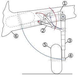 - jednotorowy (rowerowy): dwie główne golenie podwozia znajdują się w osi symetrii płatowca. Tylna główna goleń znajduje się za jego środkiem ciężkości, przenosząc ok. 50-60% masy płatowca, a przednia główna goleń podwozia znajduje się pod częścią dziobową płatowca, przenosząc ok. 40-50% masy płatowca. Dla stabilizacji na ziemi zwykle stosowane są podpierające koła dodatkowe pod skrzydłami. Układ ten jest rzadko stosowany w samolotach, natomiast powszechnie w konstrukcji szybowców i motoszybowców,