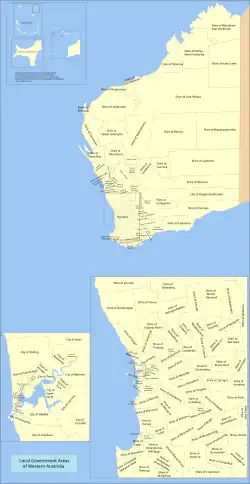 Stan Australia Zachodnia dzieli się na 142 jednostki samorządu terytorialnego. Występują trzy rodzaje samorządów: