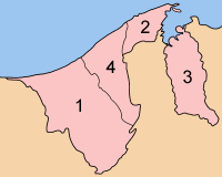 Brunei jest podzielone na 4 dystrykty (daerah): Belait, Brunei i Muara, Temburong, Tutong. Te natomiast dzielą się na mukimy, które z kolei dzielą się na kampongi (wioski).