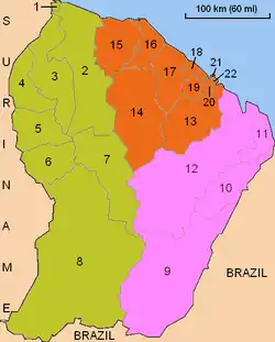 Podział administracyjny Gujany Francuskiej tworzą 2 okręgi (arrondissements) i 22 gminy.